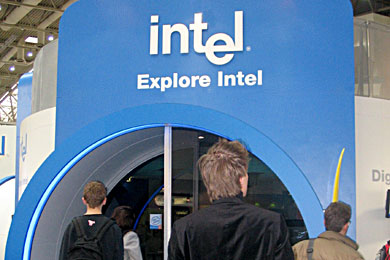 Intel: Intel had a very nice boot as you can see on the pictures. The company introduced a range of dual-core systems. They presented a dual-core chip set-up that enables a TV to play an HDTV video, and a monitor to play a 3D video game.